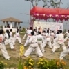 朝から暑い中、規定の型、ヌンチャク、トンファー、棒、サイの型、組手に挑戦しました。